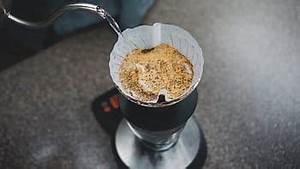 Coffee, brewed from grounds, prepared with tap water, decaffeinated